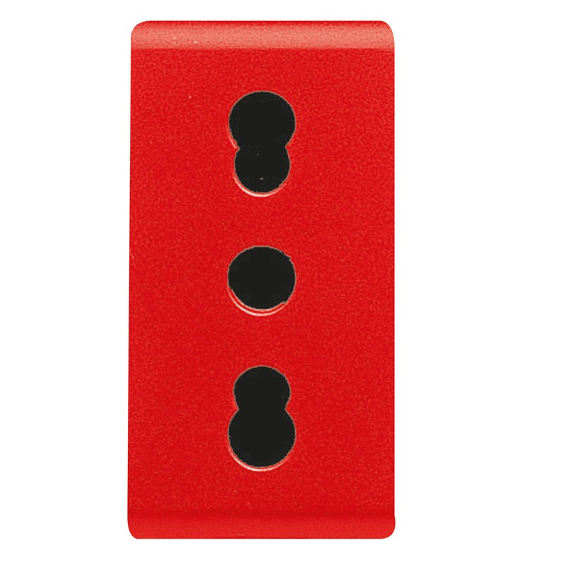 Presa bipasso Gewiss System 250V - 2P+T 16A bivalente, 1 modulo, colore rosso.