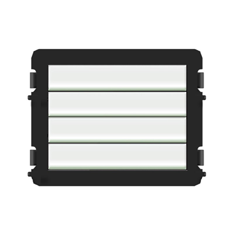 Modulo 4 Pulsanti ABB Rettangolari con retroilluminazione. Tramite apposito switch sul modulo audio, i pulsanti sono sdoppiabili in modo tale che la parte sinistra e quella destra chiamino due interni differenti.