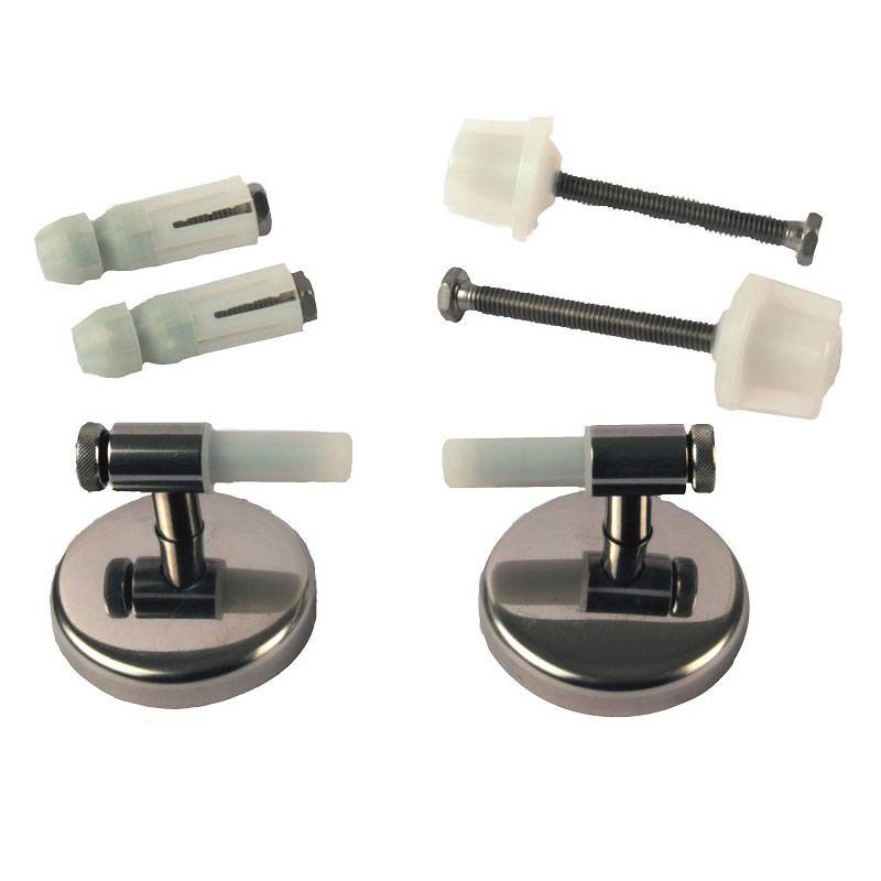 Coppie supporti GTL Tirinnanzi, per sedili WC in acciaio inox, con kit di fissaggio.