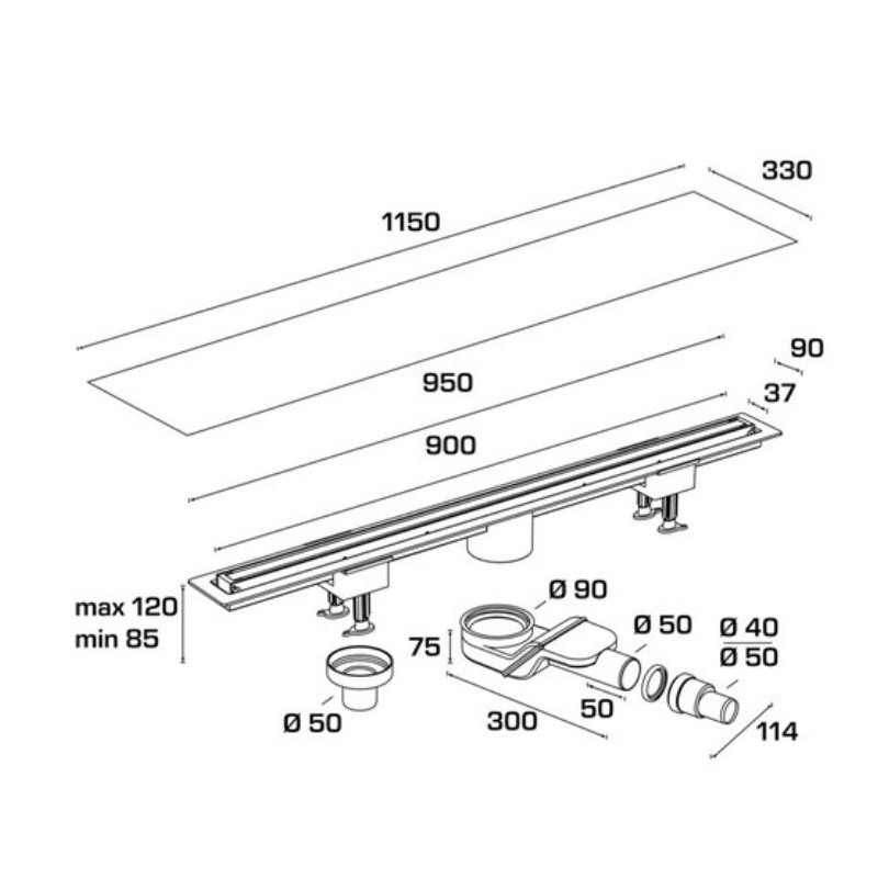 • Sifone lineare con flangia per impermeabilizzazione impermeabilizzazione inclusa