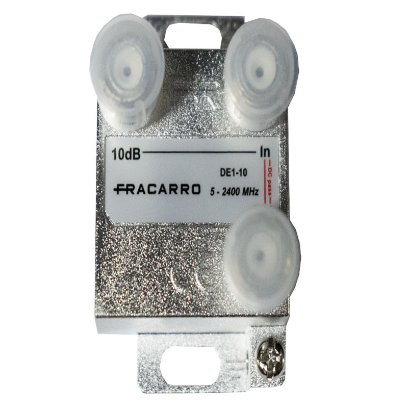 Derivatore verticale DE1-10 Fracarro a 1 via, con attenuazione 10dB e connettore F in banda TV e Satellite (5-2400MHz).