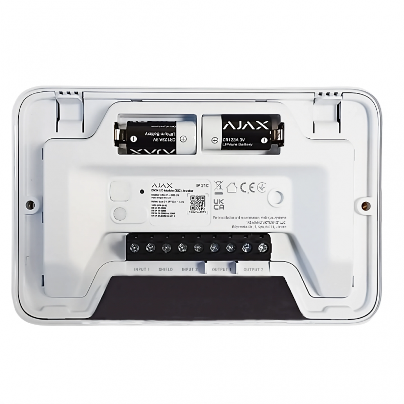 Le batterie preinstallate garantiscono fino a 5 anni di funzionamento autonomo. Lo stato delle batterie è sempre visibile in tempo reale nelle app Ajax, evitando interventi di manutenzione non necessari. Le aziende di manutenzione ricevono anche le notifiche di batteria scarica per le sostituzioni tempestive. La sostituzione delle batterie è un processo rapido e semplice: l'installatore deve semplicemente rimuovere il coperchio anteriore del modulo.