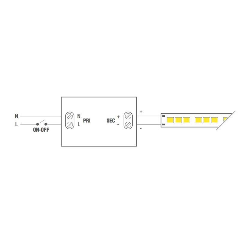 Alimentatore per strip LED LEF tensione costante (CV) dimmerabile con le seguenti caratteristiche: