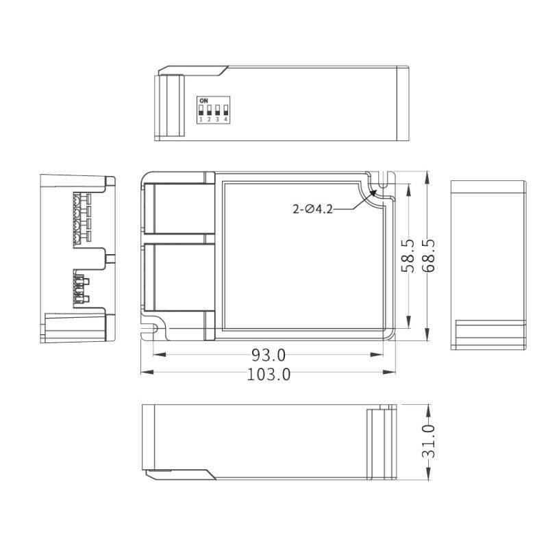 - Dimensioni: 103x68,5x31 mm (LxBxH)