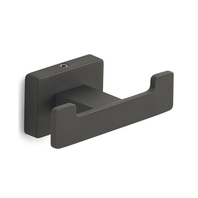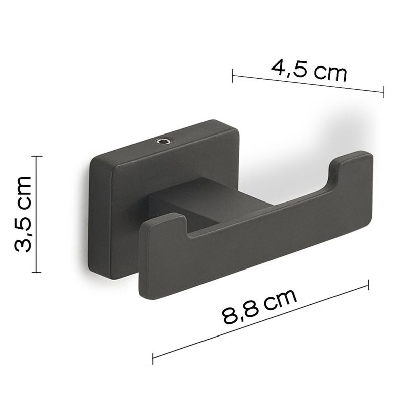 Appendiabiti per accappatoio doppio per bagno a muro Gedy Atena modello nero matto, con doppio gancio fino a 2 accappatoi, realizzato in acciaio e Cromall, dimensioni 8,8x4,5x3,5cm.