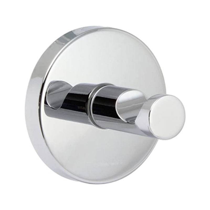 Attaccapanni singolo per bagno a muro Gedy Felce colore cromato lucido, con doppio gancio, in acciaio inox e cromall, fissaggio con viti o colla (non compresa), dimensioni: diametro 5,6 x 5,5cm.