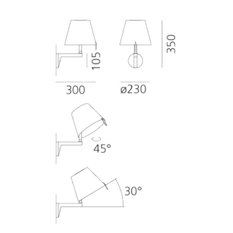 - Materiale: Corpo lampada in alluminio, diffusore in raso di seta con supporto in tecnopolimero