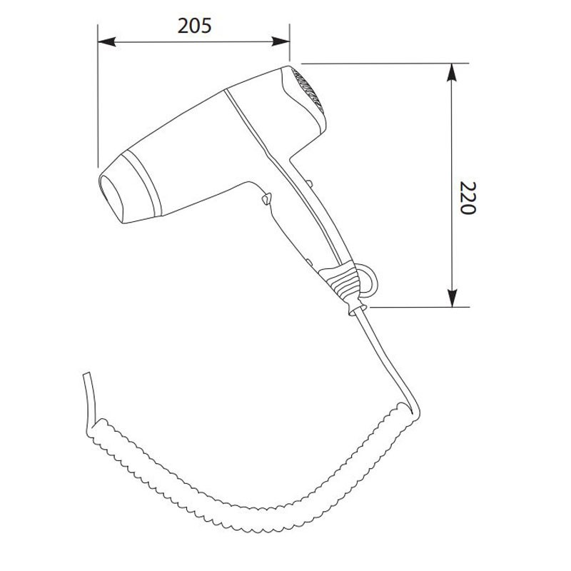 Si attiva tenendo premuto il pulsante di accensione, evitando che possa rimanere in camera acceso e incustodito. Utilizzo e manutenzione nella massima sicurezza grazie al termostato di sicurezza di cui è dotato il phon e all'interruttore on-off posto sulla base murale.