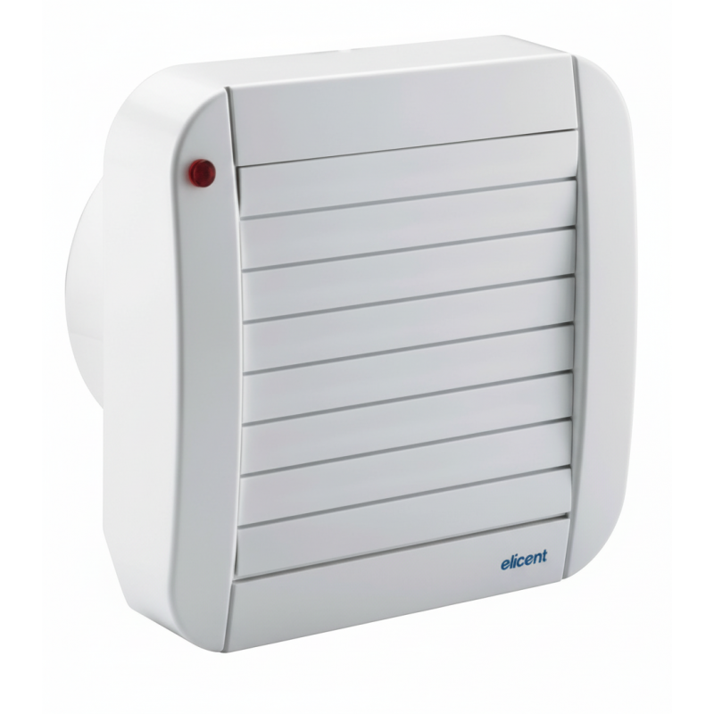 Aspiratore d'aria e odori Elicent Serio ECO 100 A elicoidale ad espulsione diretta con Timer elettronico regolabile 3-25 minuti e Alette apribili e chiudibili elettricamente per piccoli e medi ambienti quali: bagni, toilettes, ripostigli, cucine, cantine, lavanderie, etc.