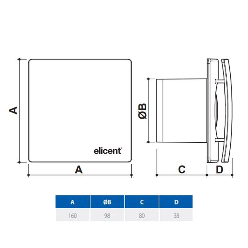 Aspiratore d'aria e odori Elicent modello ELEGANCE 100 / BASE elicoidale ad espulsione in condotto con design frontale liscio