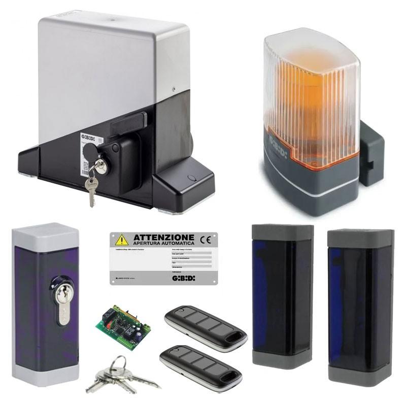 Kit cancello scorrevole Gibidi PASS 840E elettromeccanico irreversibile a 230 vac per cancelli scorrevoli di medie dimensioni e peso (fino a 800 Kg) adatto per uso residenziale e condominiale, kit composto da: