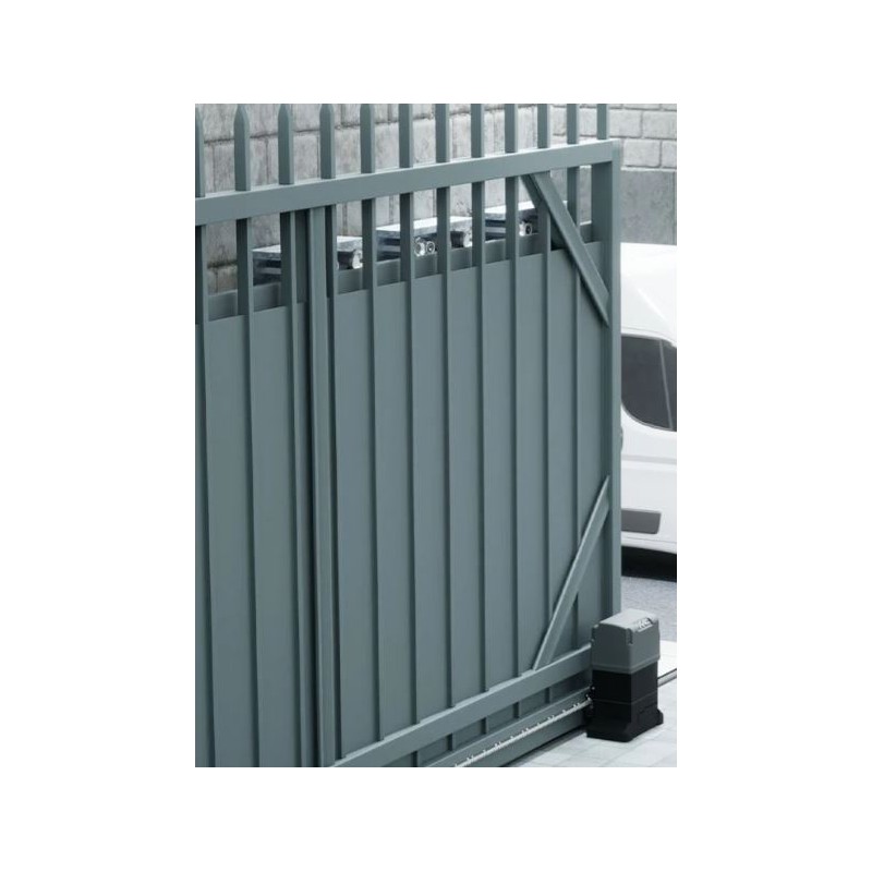 Il motoriduttore è stato rinnovato grazie alla scheda elettronica di controllo integrata E781 che dispone di livelli di controllo regolabili di velocità. Include due ingressi dedicati per coste di sicurezza (NC o 8,2 KOhm) e tecnologia Bus2Easy.