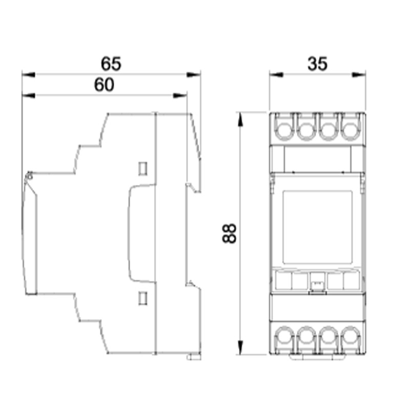 - Installazione: Su barra DIN da 35 mm secondo EN 60715 Tempo minimo di intervento: 1 secondo