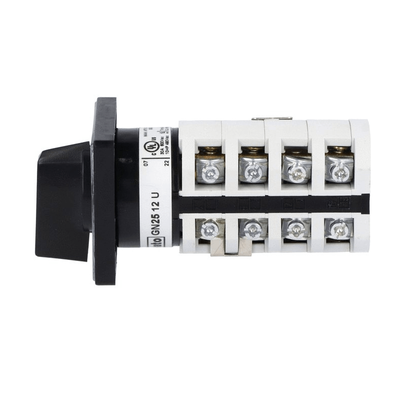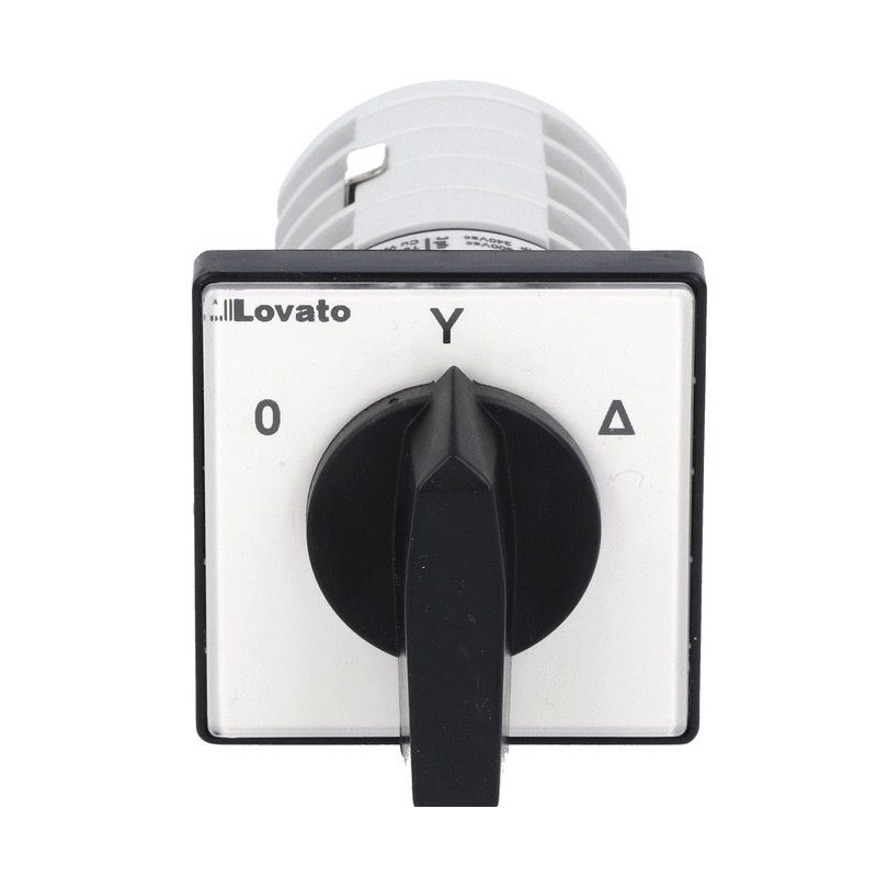 Commutatore interruttore motori Lovato a Camera rotante ST-TR 3 Posizioni 48X48, supporto anteriore Versione U, 4 Wafer, schema 12,25A.