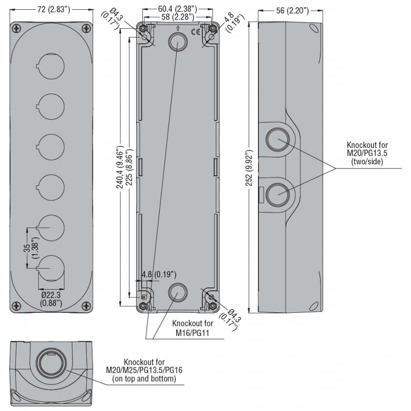 Custodia Lovato in plastica grigia IP67 per 6 pulsanti LPZP6A8