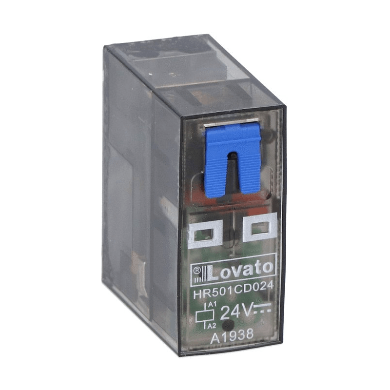 Rele' miniaturizzato Lovato con indicatore LED dello stato e azionatore meccanico, con le seguenti caratteristiche: