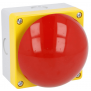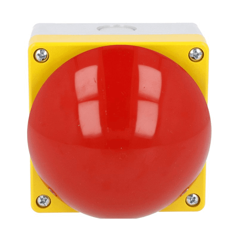 Pulsante a Palmo Lovato Rosso con Sgancio a trazione NA+NC, assiale diametro 90, progettato per applicazioni di Stop Macchine e comandi immediati, anche di servizio.