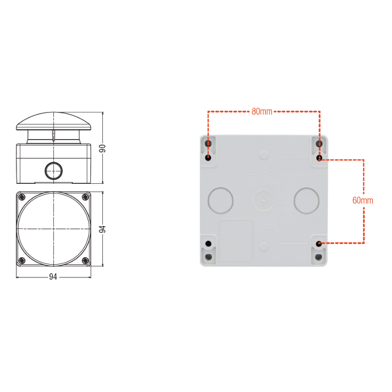 - ingresso cavi (fori sfondabili): M20/PG13,5 (1 per ogni lato) - M16/PG11 (2 sul fondo)