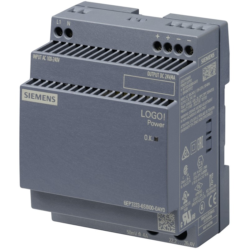 Alimentatore stabilizzato Siemens LOGO! POWER ingresso: AC 100 240 V uscita: DC 24V / 4A.