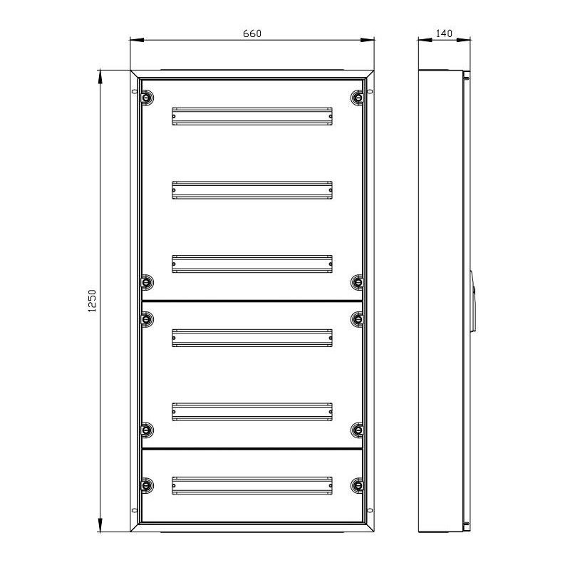 Quadro da parete/armadio Siemens ALPHA 125 UNIVERSAL, con scomparto di distribuzione, con le seguenti caratteristiche: