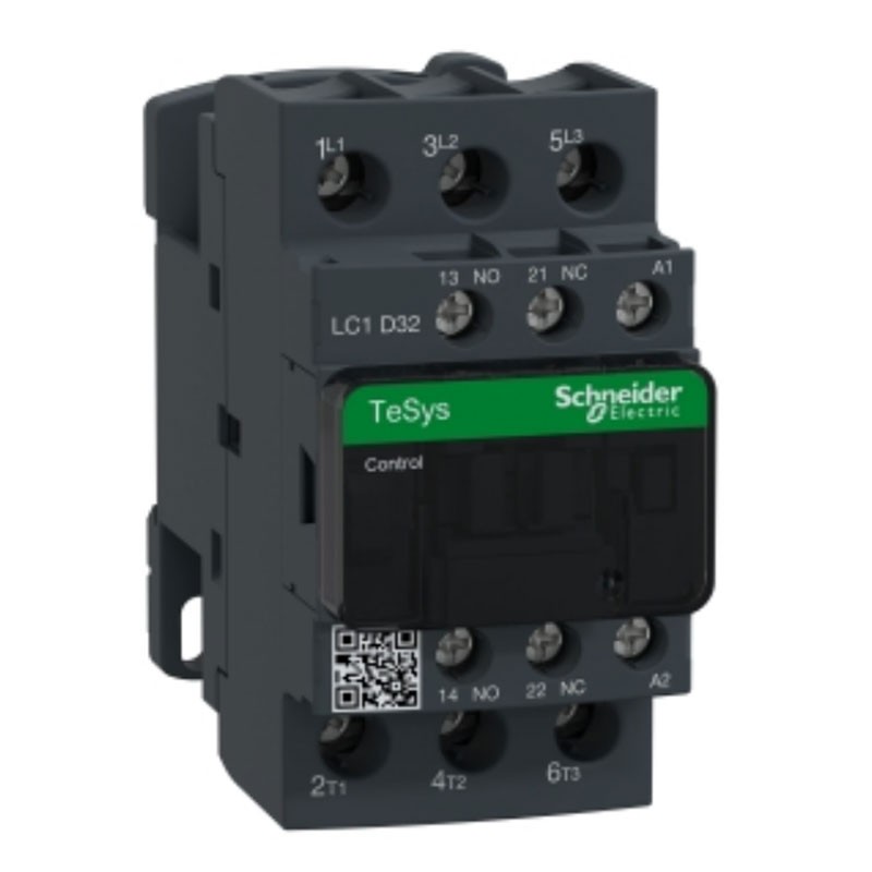 LC1D32E7 è un contattore TeSys D a 3 poli di Schneider Electric per applicazioni motore fino a 15 kW a 400V.