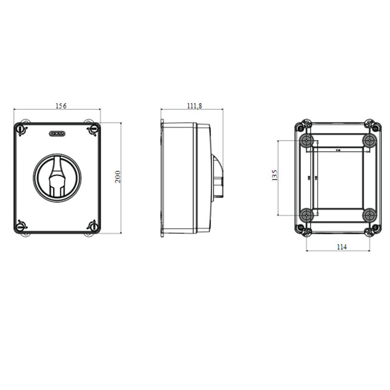 - Dimensioni esterne BxHxP (mm): 156x200x95