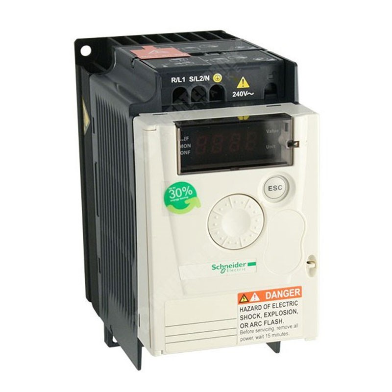 L'ATV12H075M2 VFD di Schneider Electrics è un'unità a motore asincrono monofase a velocità variabile. Questo modello è composto da un filtro EMC, ha una potenza nominale di 0,75 kW e una tensione di alimentazione di 230 V. Le dimensioni dell'inverter a frequenza variabile sono: lunghezza 143 mm, larghezza 72 mm e profondità complessiva di 132mm.