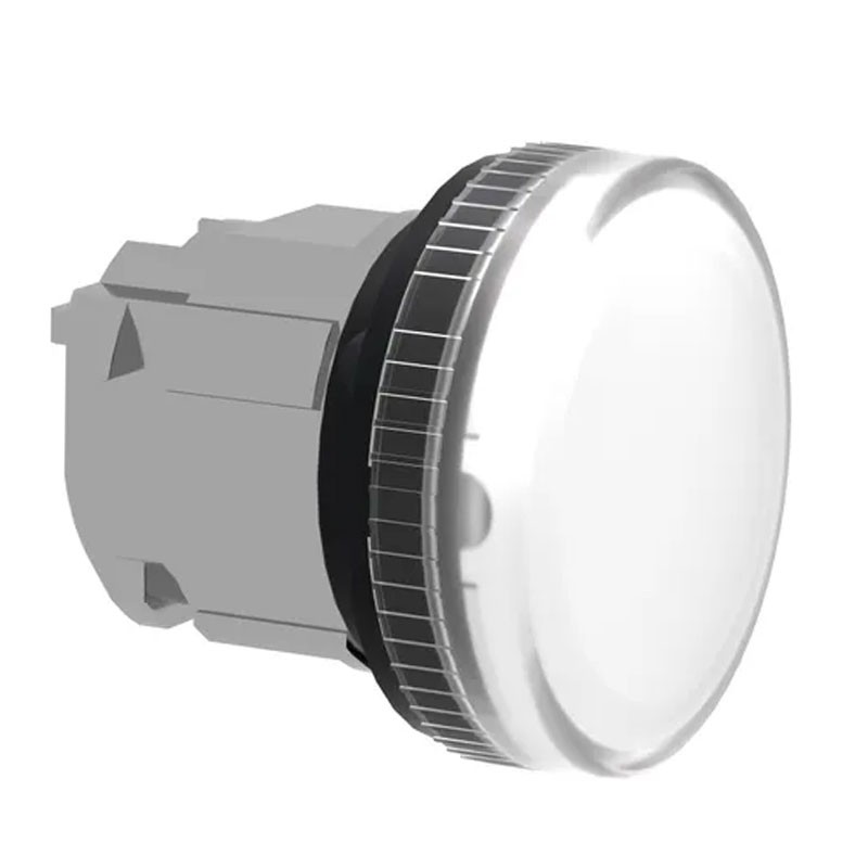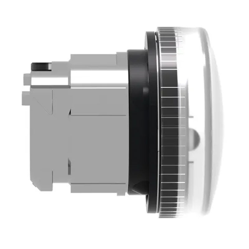 La testa bianca a gemma liscia Harmony XB4 di Schneider Electric per lampada spia è fornita con base BA9s.