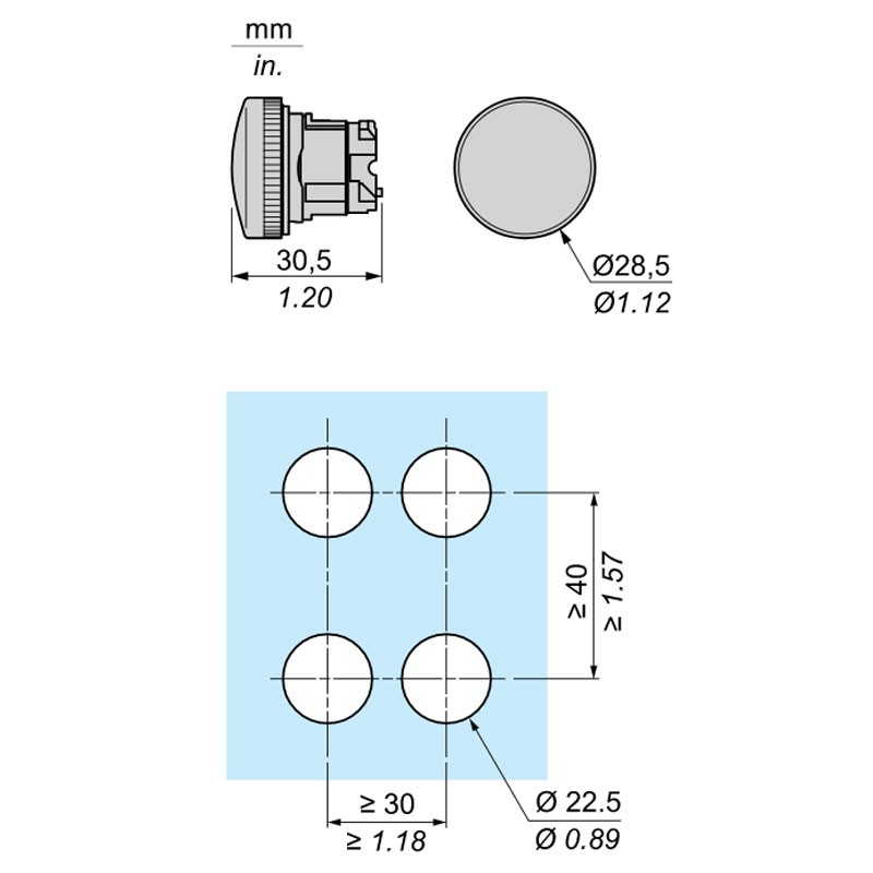 - Codice di composizione elettrico: P3 in Montaggio anteriore diretto sul pulsante con BA 9s, P4 in Montaggio anteriore diretto sul pulsante con BA 9s and transformer