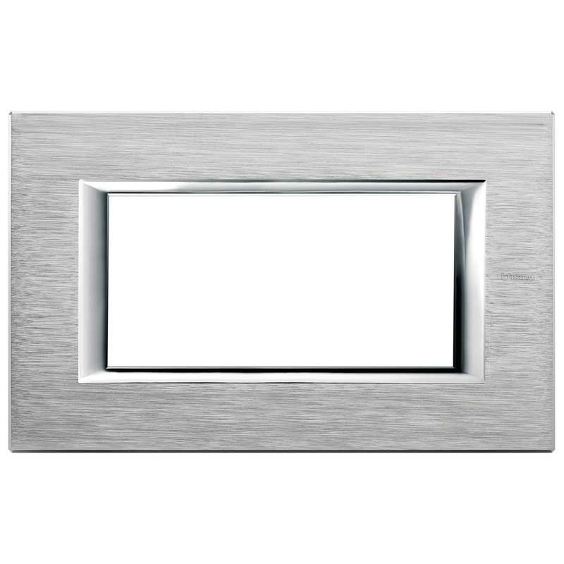 Placca rettangolare in metallo 4 posti Bticino Axolute per supporto H4704. Colore Cromo. Non è possibile installare la placca su altre serie Bticino ma solo su serie Axolute.