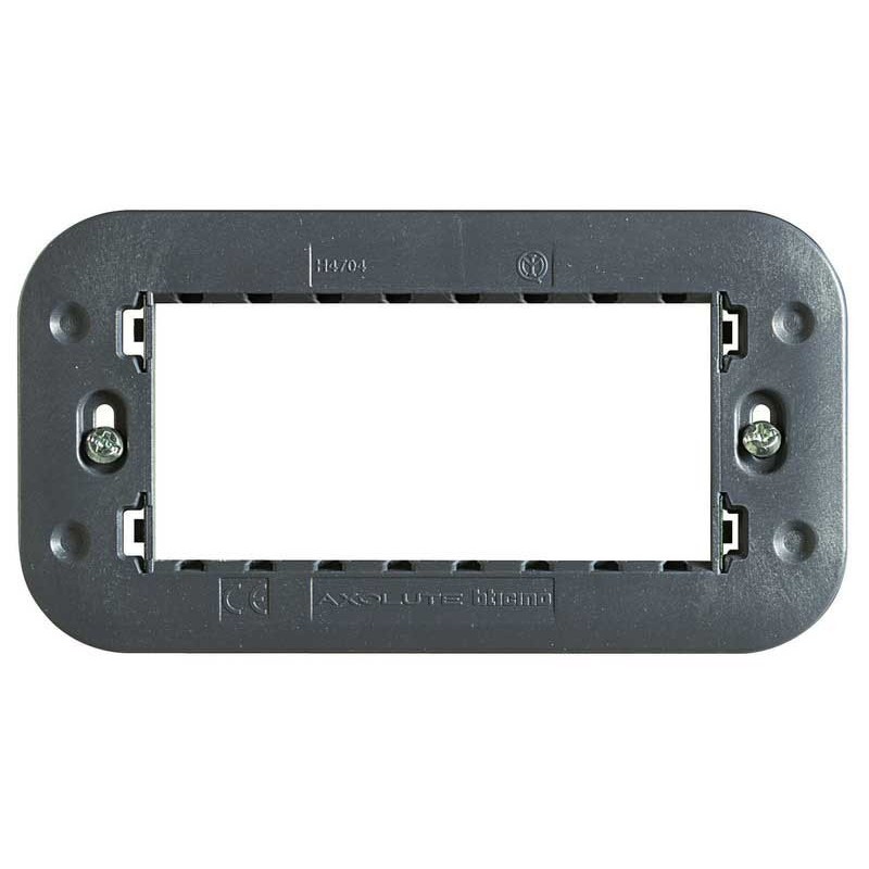 Supporto per qualsiasi scatola 4 moduli (frutti) anche non di marca Bticino. Questo supporto permette di agganciare le placche Tonde e Quadre della Bticino Axolute. N.b. non possono montare placche Bticino Axolute AIR