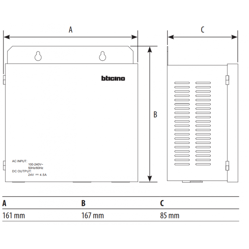 Alimentatore Bticino 100W, per sistemi Videocitofonia IP con scatola in metallo.