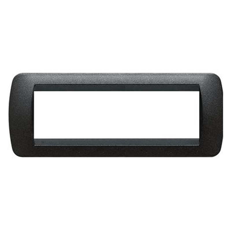 Placca Bticino LivingLight (ex international) 7 moduli (frutti, posti) colore grafite nero. La placca può montare su supporto L4707 (vecchio modello fuori produzione) e su LN4707.