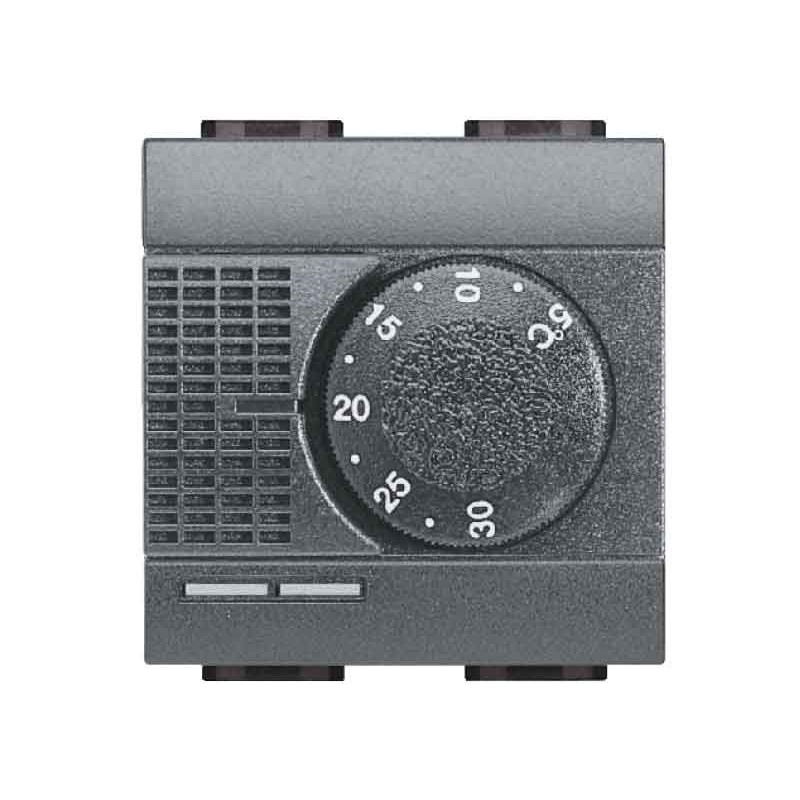 Termostato ambiente Bticino Livinglight riscaldamento condizionamento, uscita relè 1 contatto in commutazione 2A 250 Vac, alimentazione 230 Vac, colore Antracite.