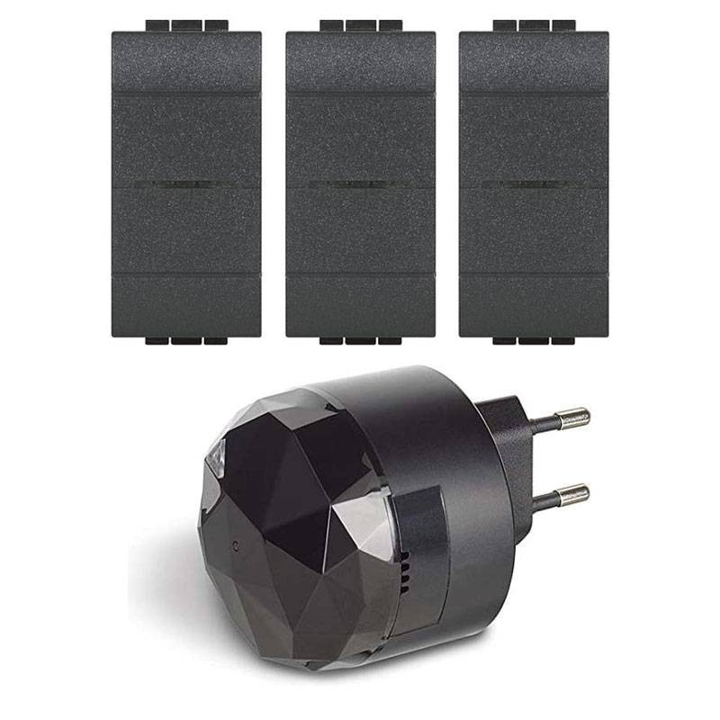 Kit Luci connesse Smart Bticino LivingLight colore Antracite, per accendere e Spegnere le Luci Tramite App o con Alexa, Google e Siri, kit composto da: