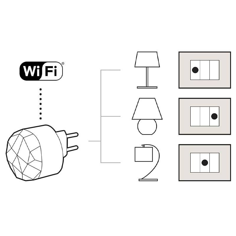 Il gateway ha una spina universale che, connettendosi al WIFI, permette di far comunicare tra loro tutti i dispositivi connessi del tuo impianto elettrico.