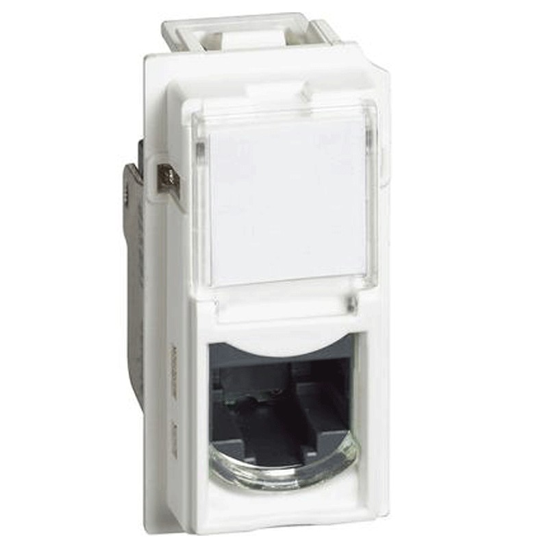 Connettori RJ45 Bticino living Now toolless UTP cat5E, colore bianco, connessione tipo TOOLLESS IDC per trasmissione dati/telefonia. Questi connettori sono utilizzabili per sistemi di trasmissione segnali a 4 coppie, 1 modulo.