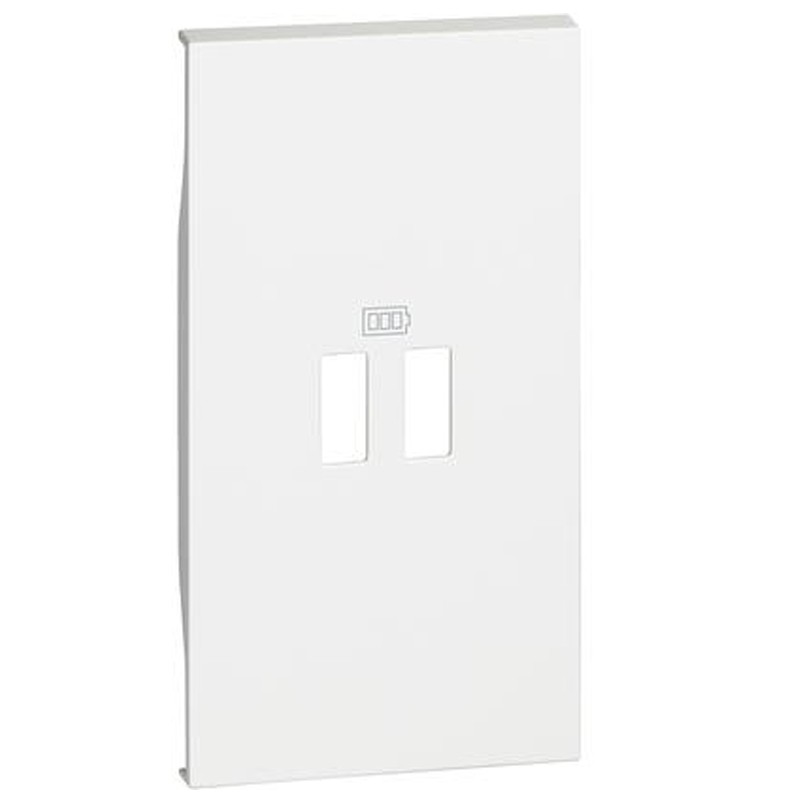Cover Bticino Living Now per Caricatore USB 2 moduli, colore bianco, da abbinare gli articoli K4285C2 (Caricatore USB tipo A con tensione 5 Vdc.), oppure K4286C2 (Caricatore USB tipo C con tensione 5 Vdc.), oppure K4287C2 (Caricatore USB tipo A e C con tensione 5 Vdc).
