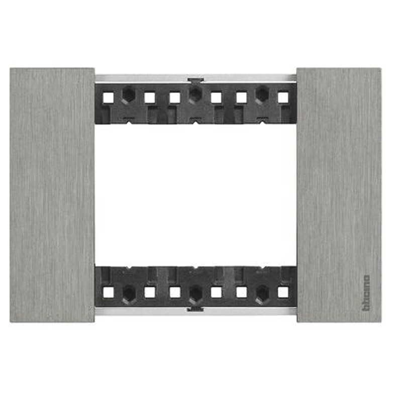 Placca Bticino Living Now 3 posti colore acciaio. Materiale: zama, dimensioni altezza 86 - larghezza 125.