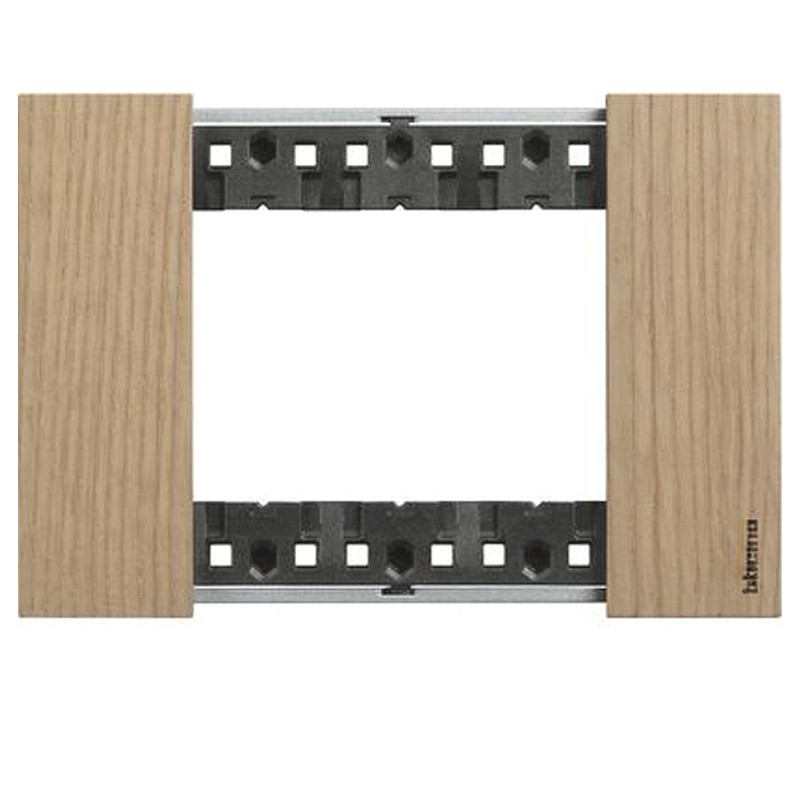 Placca Bticino Living Now 3 Posti colore rovere. Va applicata solo su supporto K4703, materiale: legno, dimensioni altezza 86 - larghezza 125.