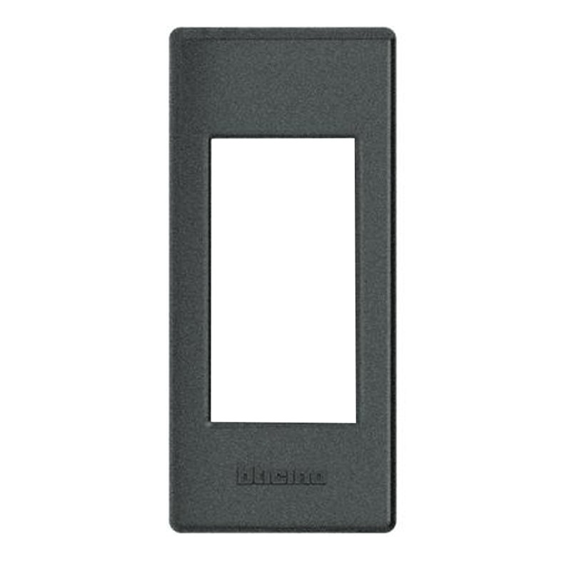 Placca Bticino per installazione su profilati 1 modulo, completa di supporto grigio antracite.