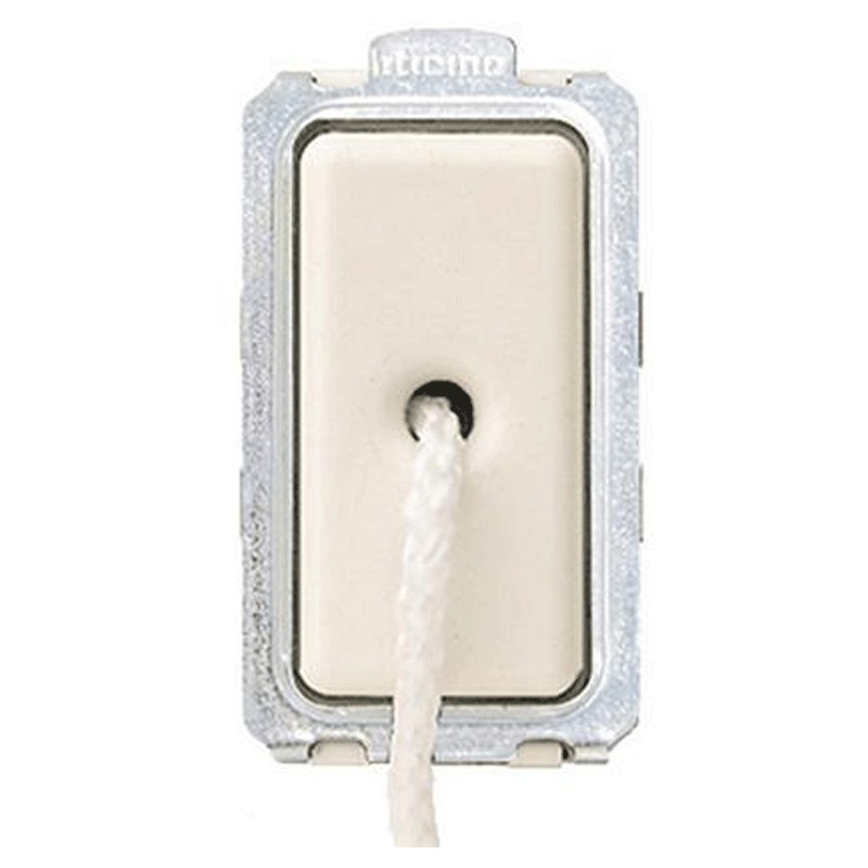 Interruttore a tirante Bticino 1P 10A NO, con cordone lungo 1.8 metri, 1 modulo. Modulo da applicare sui supporti 5367R,503R,504S,505R,506LS.