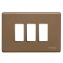 Placca per Interruttori Bticino Magic, 3 posti (moduli) colore bronzo, con sottoplacca isolante e aggancio graduale per supporti 500S/13, 503R.