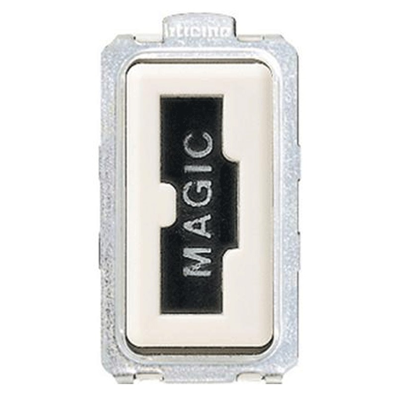 Presa di sicurezza irreversibile Bticino Magic 2P+T 10 A 250V, 1 modulo. Modulo da applicare sui supporti 5367R,503R,504S,505R,506LS.