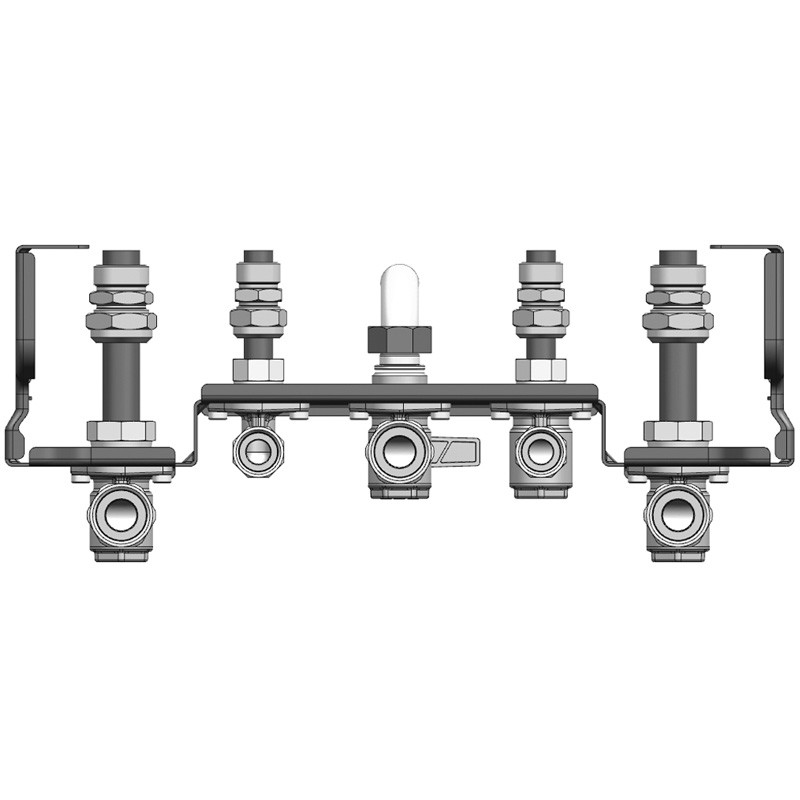Piastra di collegamento idraulico Bosch per caldaie completa di rubinetti lato riscaldamento, gas e raccorderia per ACS/AFS.
