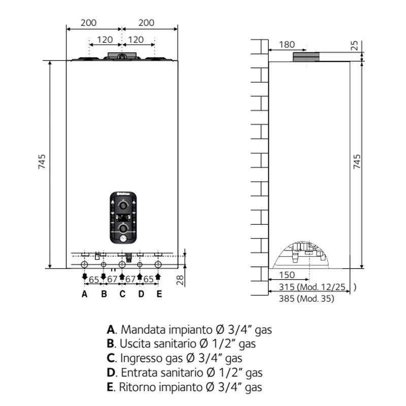 Funzionamento Metano, GPL ed aria propanata senza bisogno di kit. La trasformazione avviene grazie al controllo di combustione selezionando il tipo di gas dal menu tecnico.