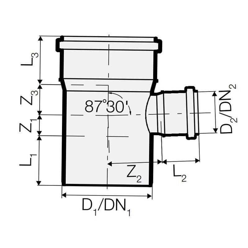 Braga ridotta 87 gradi 30 primi per tubi di scarico fonoisolante in PP Polipropilene Valsir PP3 a innesto con le seguenti caratteristiche: