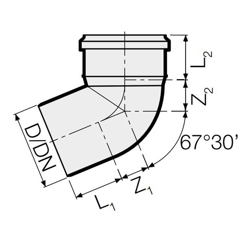 Curva 67 gradi 30' per tubi di scarico fonoisolante in PP Polipropilene Valsir PP3 a innesto con le seguenti caratteristiche: