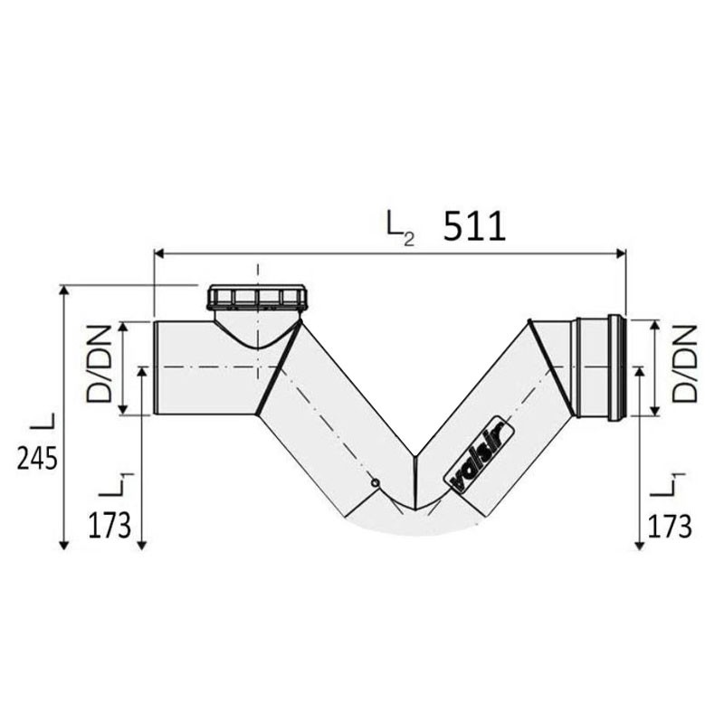 Sifone Firenze in PP Valsir PP3 per tubi di scarico D75mm L245mm VS0533075
