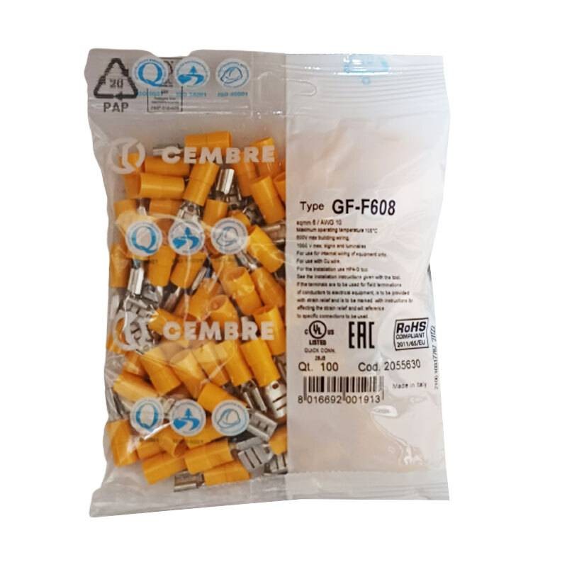 Innesto femmina Cembre giallo a spina piatta 6,35x0,8mm 100 pezzi GF-F608P